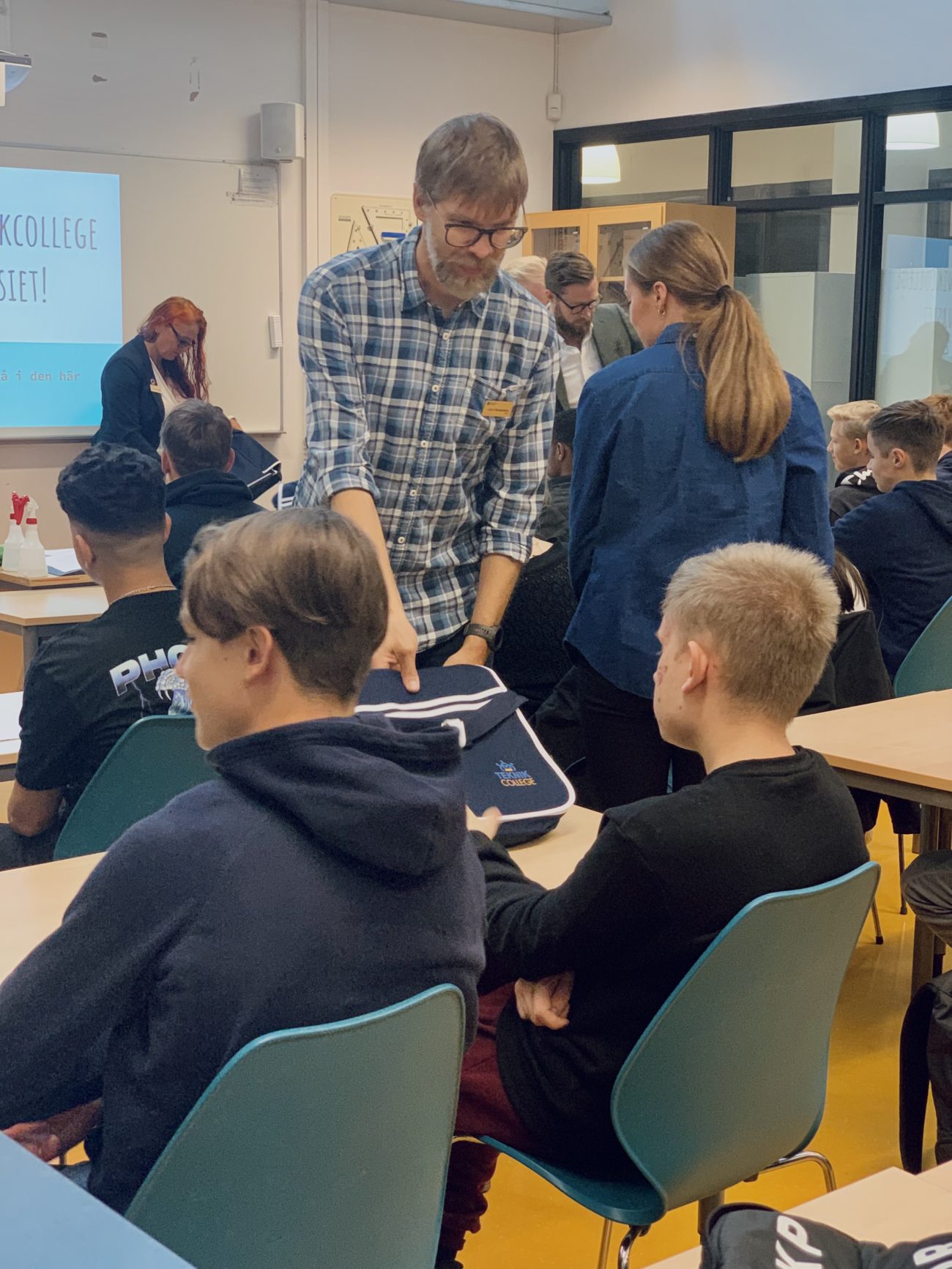 Idag startade gymnasieskolorna igen efter sommarlovet och Teknikcollege var där för att välkomna de nya eleverna på teknik- och industritekniska programmet. Eleverna välkomnades med en varsin goodiebag och peppande ord inför skolstarten.